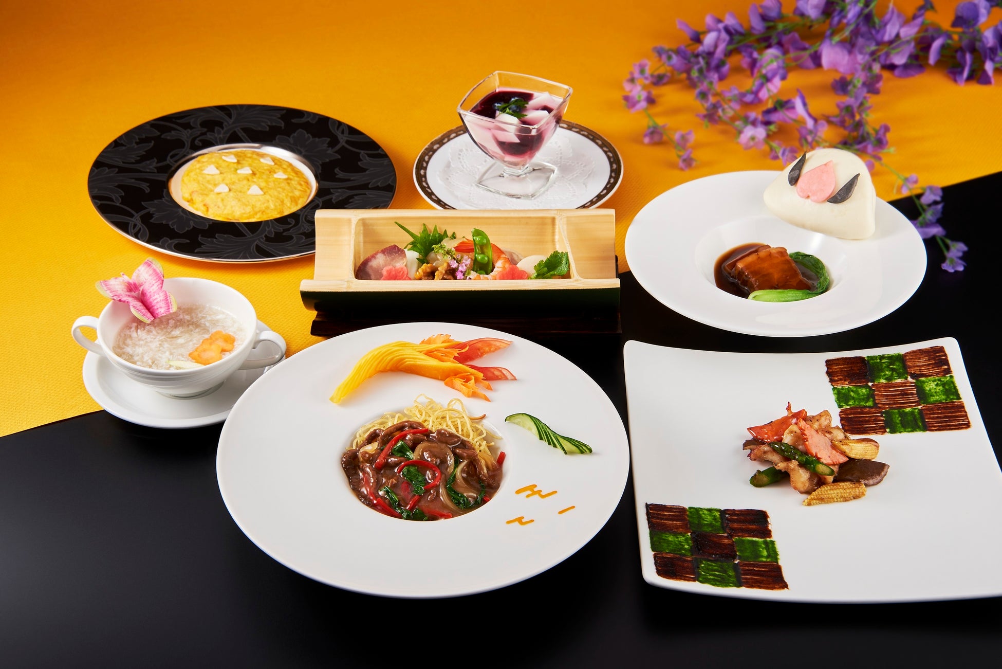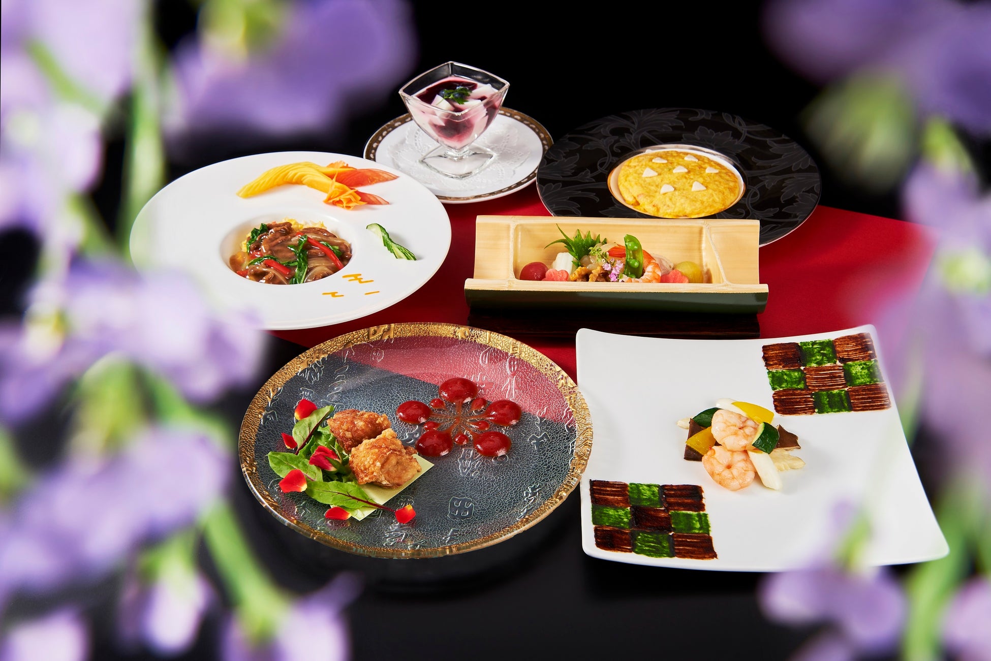 ホテルニューオータニ大阪では、“禰󠄀豆子の竹盛り前菜盛り合わせ”をはじめ、シンボルの羽織が彩る大海老の炒めや、炎の形に飾り付けられた特製炒飯など、アニメの世界観を盛り込んだ中国料理のコースメニューを提供いたします。