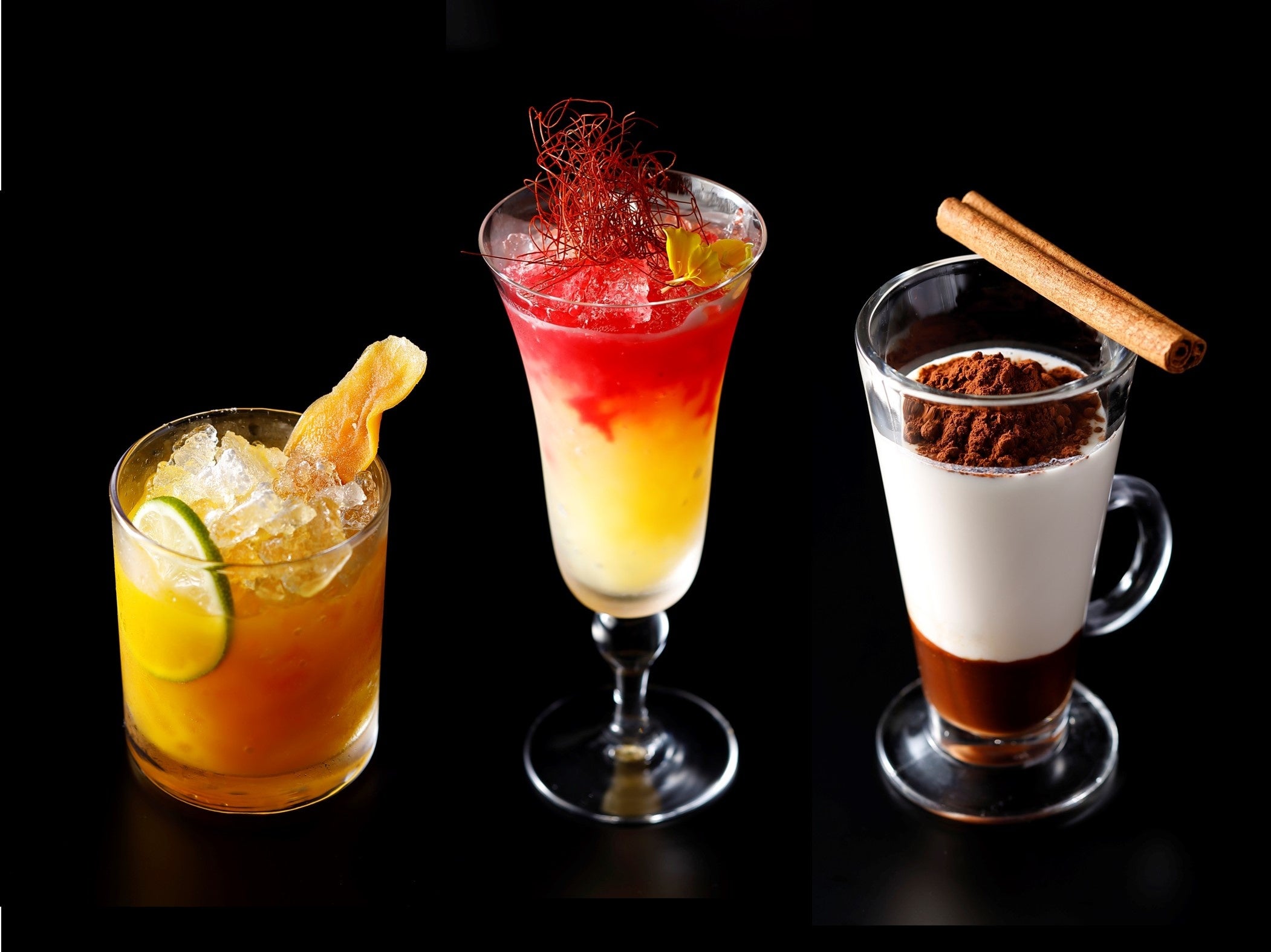 キャラクターをイメージしたコラボノンアルコールカクテルも6種ご用意。フォトジェニックなだけでなく美味しさを追求した一杯をぜひお楽しみください。コラボノンアルコールカクテルをご注文いただいた方には、ホテルスタッフに扮する「鬼滅の刃」のufotable描き下ろしイラストキャラクターをデザインしたコースターをプレゼントいたします。(コラボノンアルコールカクテルの提供は、ディナータイムのみ)