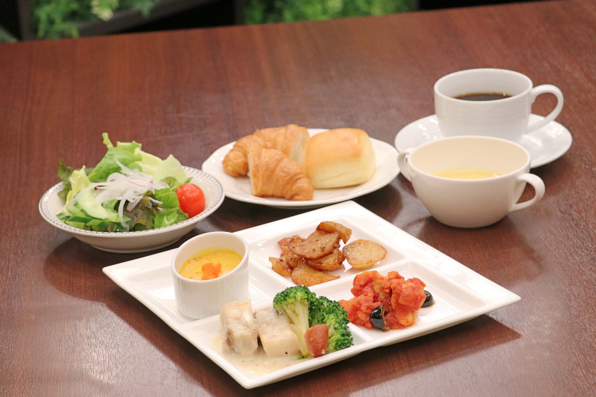 メインディッシュをお選びいただき、オードブル・サラダ・スープ・ソフトドリンクはビュッフェスタイルでお楽しみいただけます。食後にデザートもついたお得なランチビュッフェとなっております。