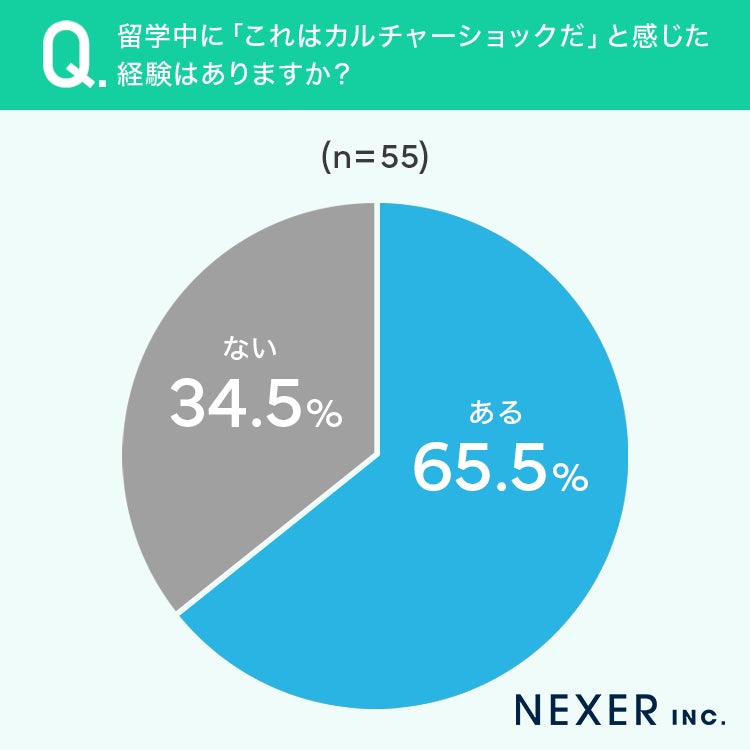 ■65.5%が留学中に「これはカルチャーショックだ」と感じた経験がある