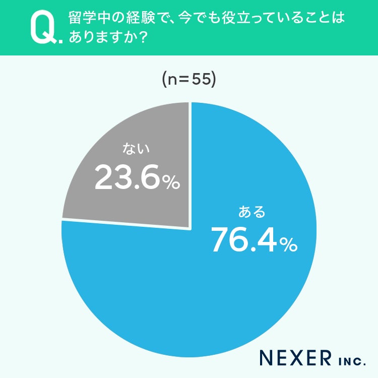 ■76.4%が留学中の経験で今でも役立っていることが「ある」
