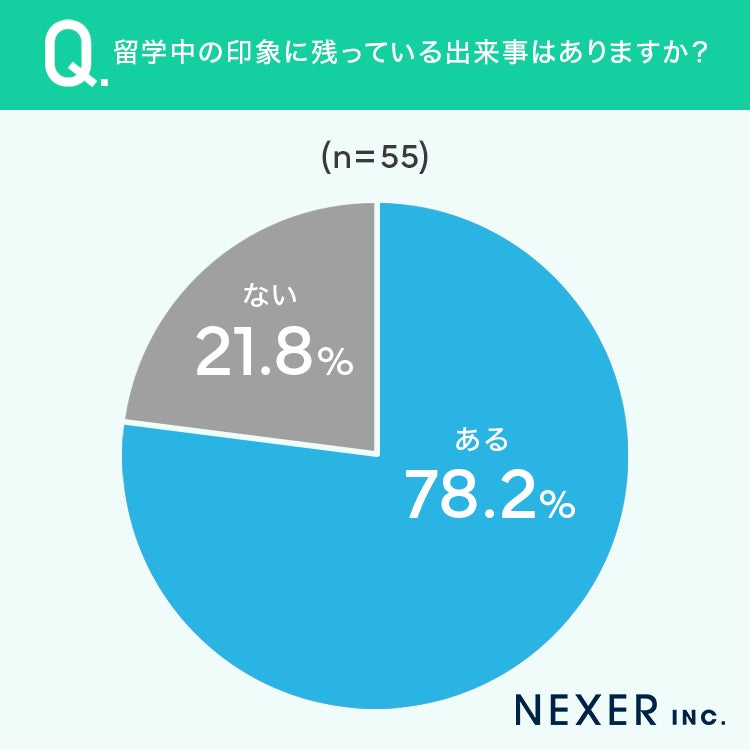 ■78.2%が留学中の印象に残っている出来事が「ある」