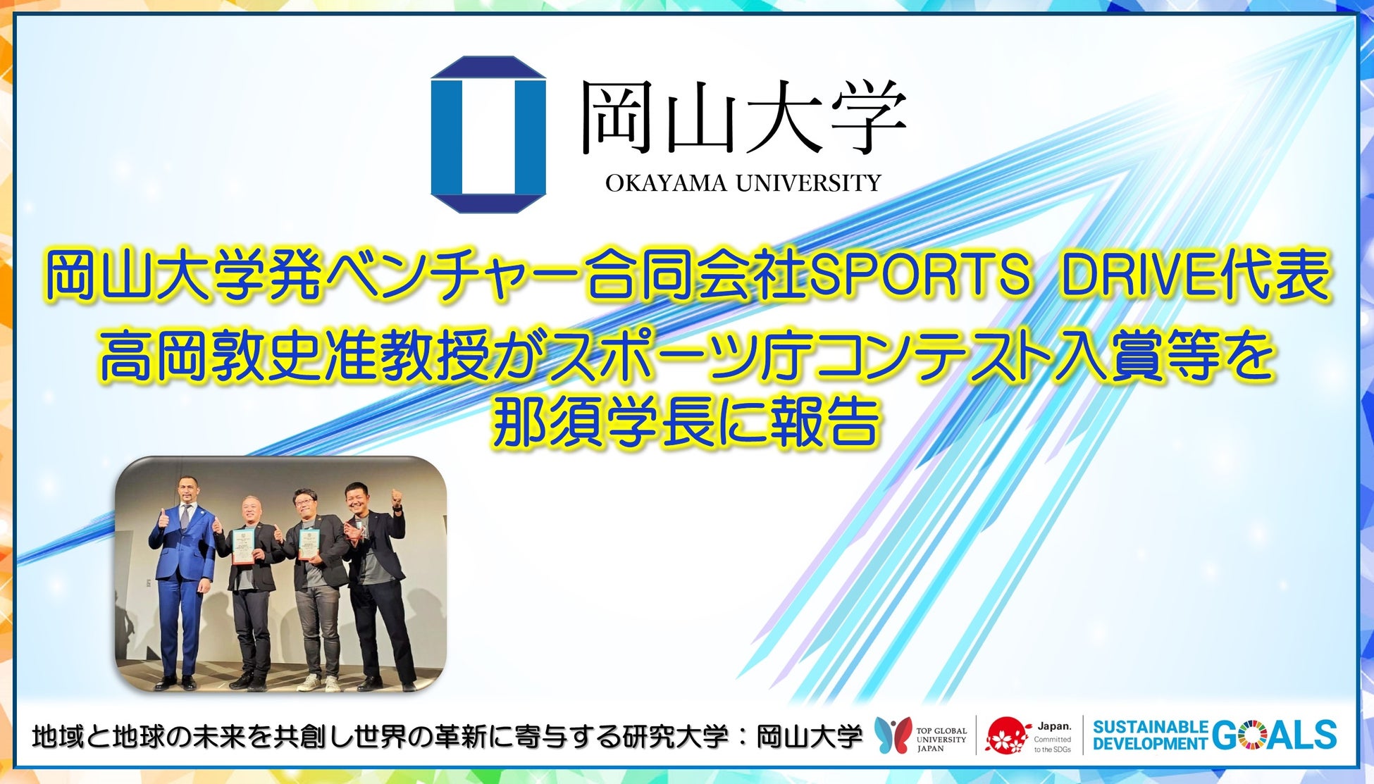 【岡山大学】岡山大学発ベンチャー合同会社SPORTS DRIVE代表の高岡敦史准教授がスポーツ庁コンテスト入賞等を那須学長に報告