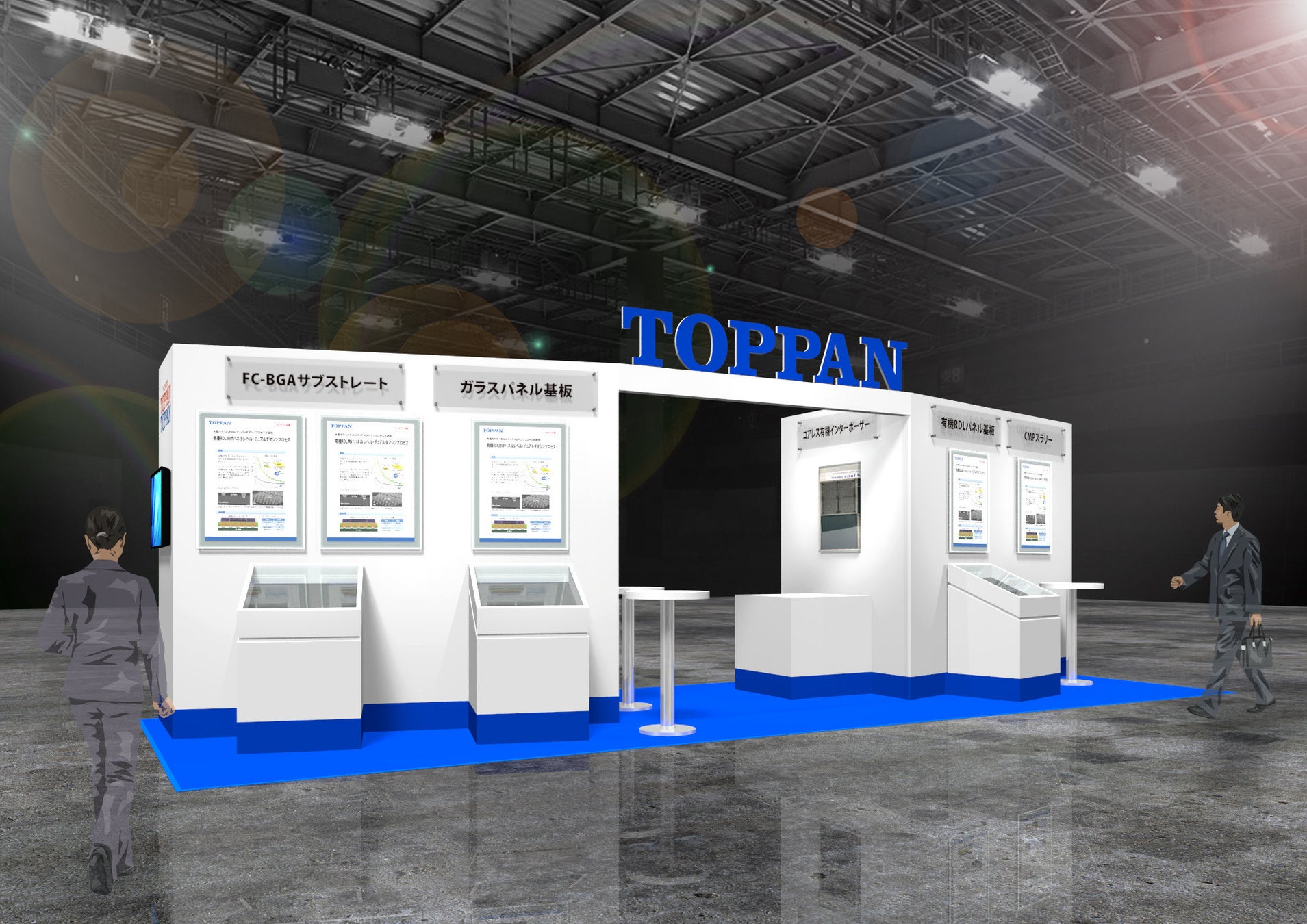TOPPANブースでは、FC-BGAサブストレートや、次世代半導体パッケージ関連の技術や部材などの展示・紹介を行います。