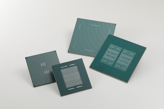 FC-BGA(Flip Chip-Ball Grid Array)サブストレートは、LSIチップの高速化、多機能化を可能にする高密度半導体パッケージ基板です。活用される分野は産業機器から民生品まで幅広く、特にI/O数(信号数)の多いデジタル機器に用いられています。今回のTOPPANブースでは、生成AIや通信機器分野の先端LSIに適用されるFC-BGAサブストレートとして、チップレット構造(※1)に対応する次世代半導体パッケージ向けFC-BGA、およびLSIと光デバイスの近接実装に対応する高速データ伝送FC-BGAを展示します。