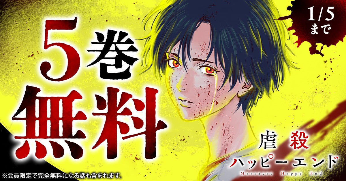 前シリーズのこちらも大量無料キャンペーン!!「虐殺ハッピーエンド」宮月新(原作)向浦宏和 (作画)ヤングアニマルWebにて5巻無料!
