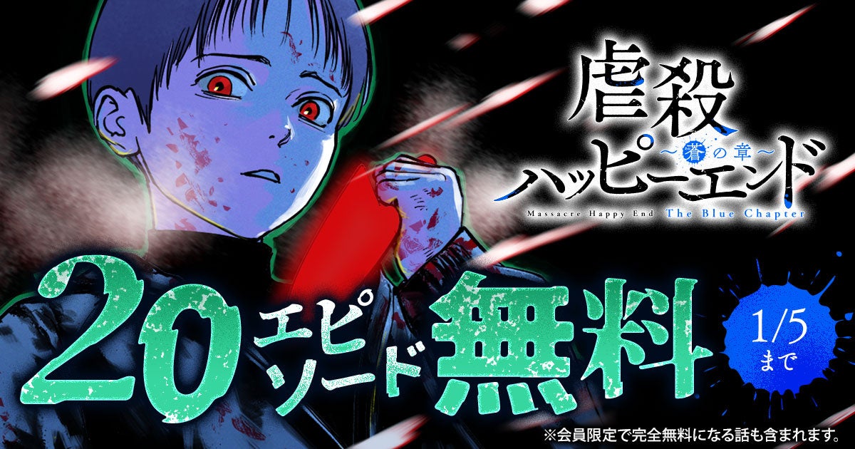 話題沸騰のパニックサスペンス「虐殺ハッピーエンド~蒼の章~」&「虐殺ハッピーエンド」がヤングアニマルWebにて大量無料!!