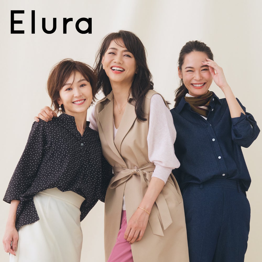 Eluraは「私が私を好きでいるために。いくつになっても、自分らしく、女性らしく」をコンセプトに、化粧品のように「大人女性の悩みに効く」に、こだわってつくられた大人女性のためのブランドです。ブランド名は「A Rule」の逆読みに由来。「ルールではなく。私のルール。いくつになっても、自分らしく、女性らしく。」という意味を込めて名付けました。単独店(催事店舗を含む)全17店舗を展開。40代~50代を中心とした大人女性をターゲットとしています。