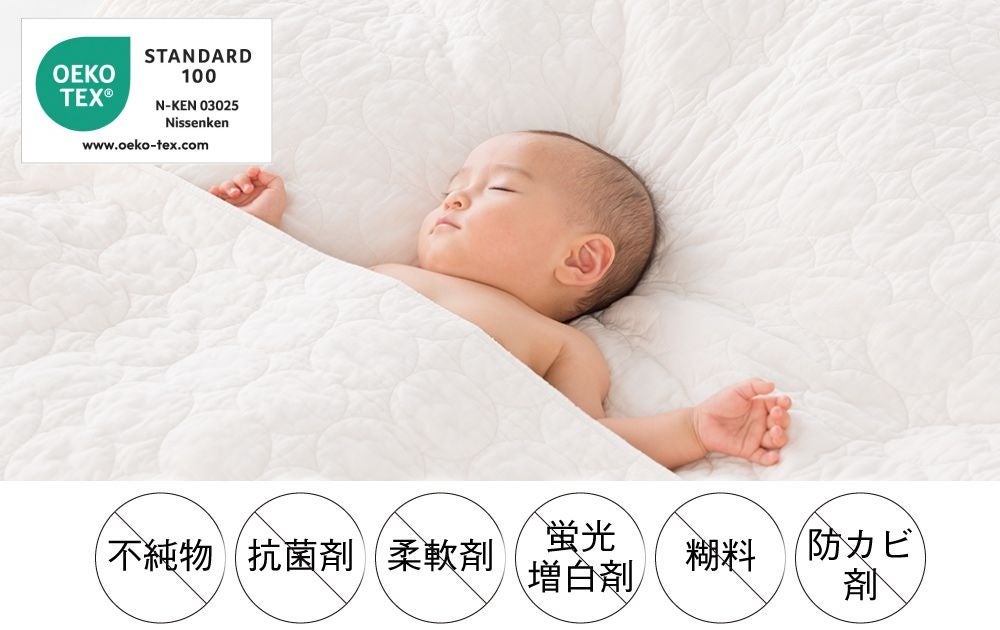 「パシーマ®」は龍宮株式会社(本社:福岡県うきは市、代表取締役社長:梯 恒三)が製造する、ガーゼと脱脂綿でできた、素肌にやさしいこだわりの素材が特長の寝具です。人の肌にやさしい安全な寝具を追及した結果、「医療にも使われてきたガーゼと脱脂綿の組み合わせでつくる」という答えにたどり着き開発されました。蛍光増白剤や柔軟剤などは一切使用しておらず、世界最高水準の安全な繊維製品の証「エコテックススタンダード100」の中でも、最も厳しい「クラス1(乳幼児製品)」の認証を取得しています。