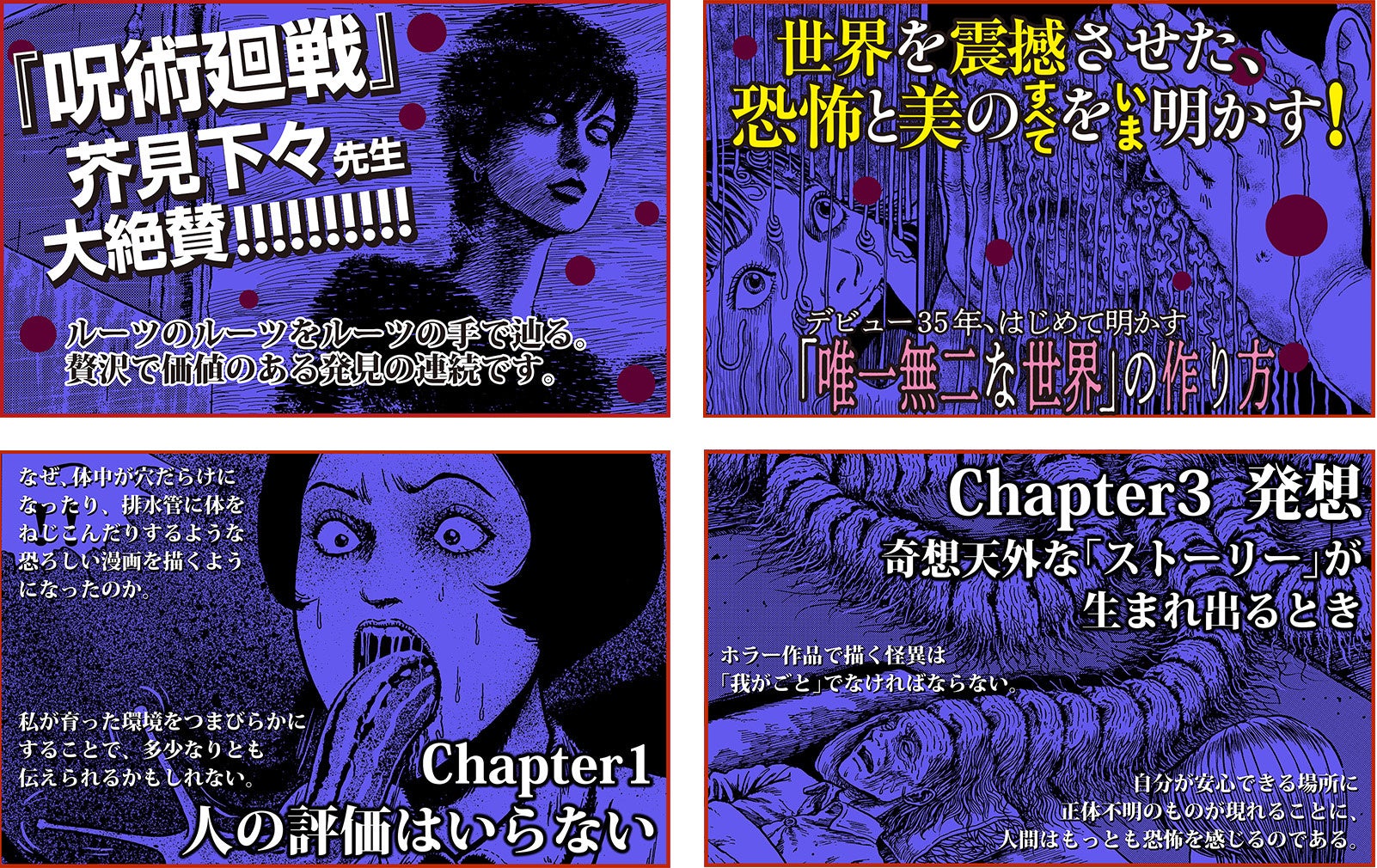 「ホラー漫画の神様、現る」「『残酷さ』とは何か?」「漫画でもアートをやれる」他