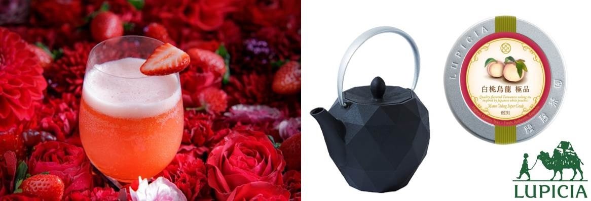 いちごスイーツビュッフェに合わせたホテルおすすめの2種をご用意いたしました。いちごを使った定番カクテルといえば、いちごとスパークリングワインを合わせた「レオナルド」が王道ですが、お酒が苦手な方も含め多くのお客さまに愉しんでいただきたいという想いから、いちごとノンアルコールスパークリングワインを合わせたモクテルにアレンジし、ご用意いたします。(『ストロベリーレオナルドモクテル』¥1,200 ※サービス料共)一口飲むと、いちごのフレッシュな香りが広がり、まるでいちご畑にいるような味わいを感じられます。後味もすっきりしているので、お食事やスイーツにも相性抜群です。また、“世界の紅茶専門店”として知られるLUPICIA(ルピシア)からは、『白桃烏龍 極品』(1ポット¥700 ※サービス料共)が登場。果汁がしたたるような甘い白桃の香りと、すっきりとしたお茶の味わいが感じられ、LUPICIAの数ある紅茶の中でも不動の人気を誇るベストセラー商品です。こちらは、南部鉄器の老舗「岩鋳(いわちゅう)」で製作された、まるで折り紙を折り合わせて作られたような個性的なデザインが特徴の南部鉄器ティーポット「オリガミ」にて提供します。心あたたまるこちらのドリンクは、お食事の合間のホッと一息つきたい時におすすめのアイテムです。
