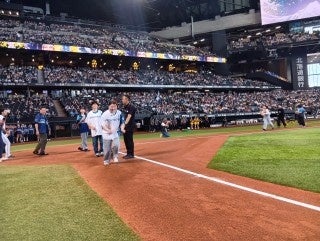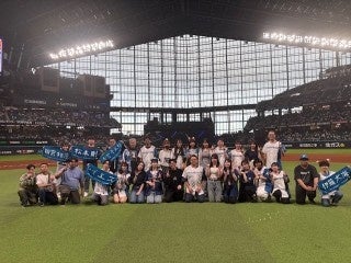 ツアー内容として参加者は、試合前にベースランニングを実施し選手が実際に駆け抜けるフィールドを体験することでプレーヤーの臨場感を身近に感じていただきました。試合後にはグラウンドで記念撮影を行い、特別な想いでの一枚を写真に収めました。日常の観戦では味わえない非日常的な雰囲気の中で、社員同士の絆をより一層深める場となりました。
