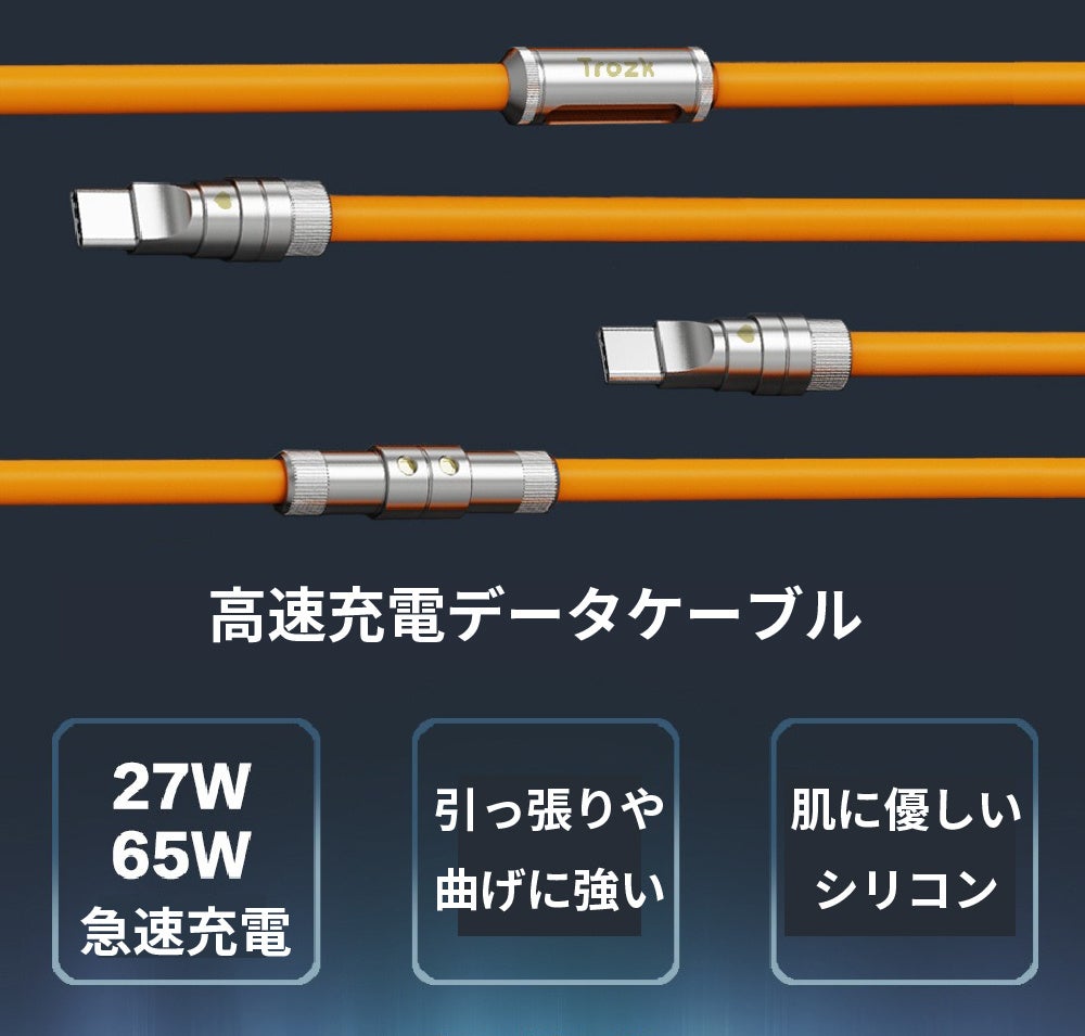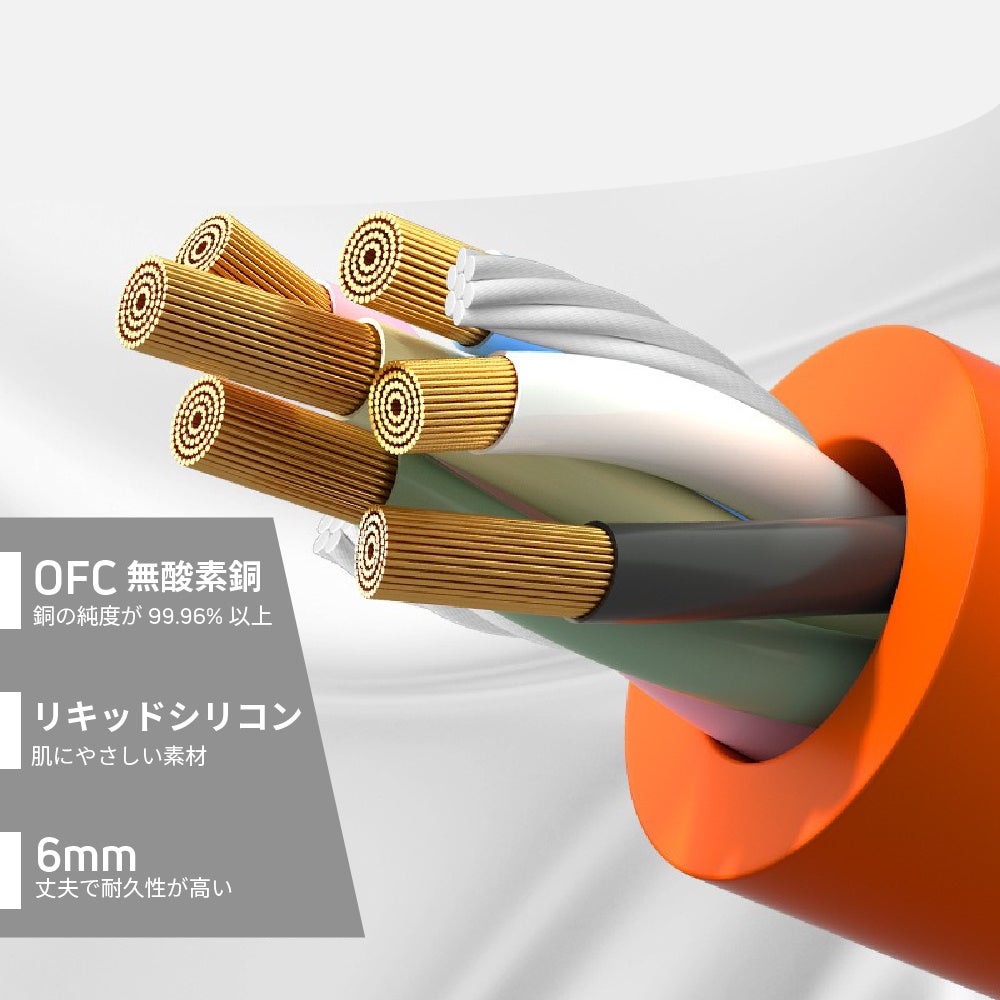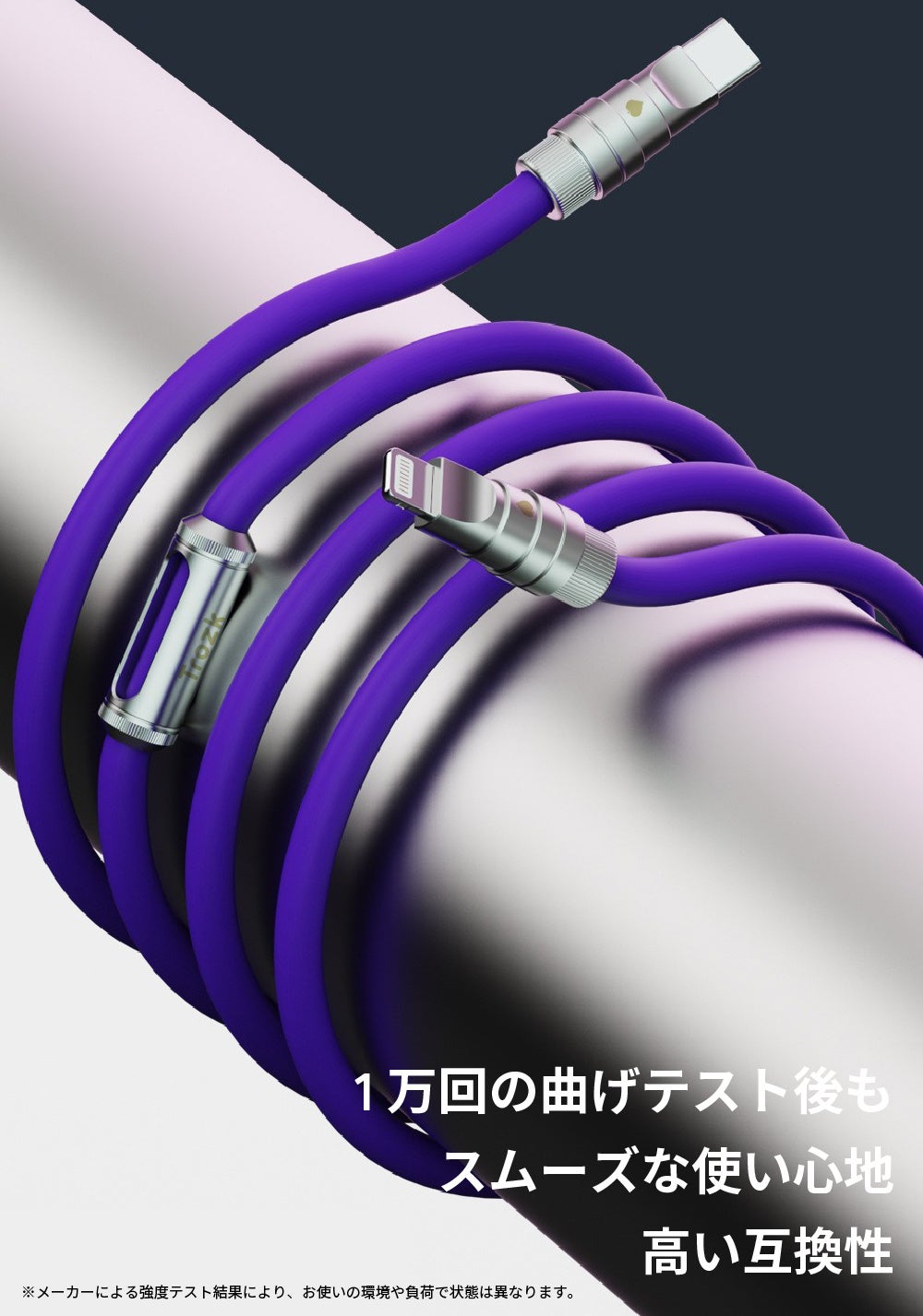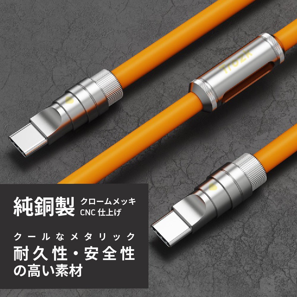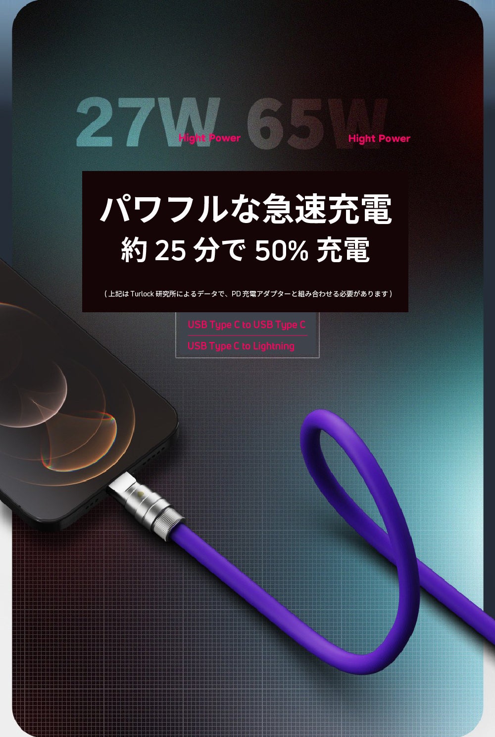 PD対応USB-C/Lightning最大27W/長さ1.8m/無酸素銅OFC/−30℃〜85℃に耐えるリキッドシリコン
