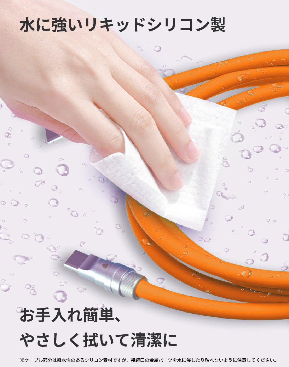 また、ケーブル自体は防水ではありませんが、リキッドシリコン部分の表面は