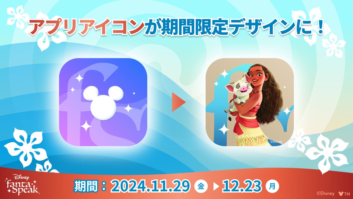 2024年11月29日(金) ~12月23日(月)の期間限定で、アプリアイコンのデザインを『モアナと伝説の海』イメージに変更します。