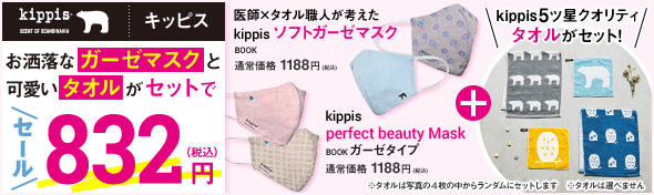 ↓『kippis perfect beauty mask BOOK ガーゼタイプ・ベージュ』とタオルセットを832円(税込)で購入する!