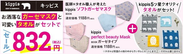 - 北欧テイストのおしゃれなキッピス ガーゼマスク 各1188円(税込)がタオルとセットで832円(税込)に!