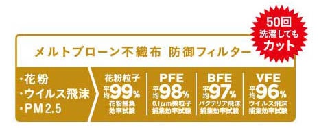・特許取得のメルトブローン不織布防御フィルターがウイルス飛沫99%カット