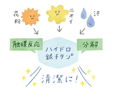 ・ハイドロ銀チタン(R)加工により、花粉のタンパク質や不衛生タンパク質、汗など嫌なニオイを吸収・分解