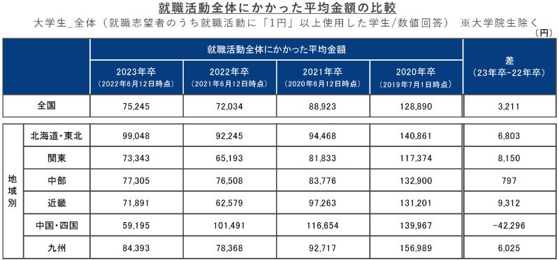 【2023年卒 就職活動TOPIC】就職活動費用コロナ禍前と比べ約4割減。前年同水準
