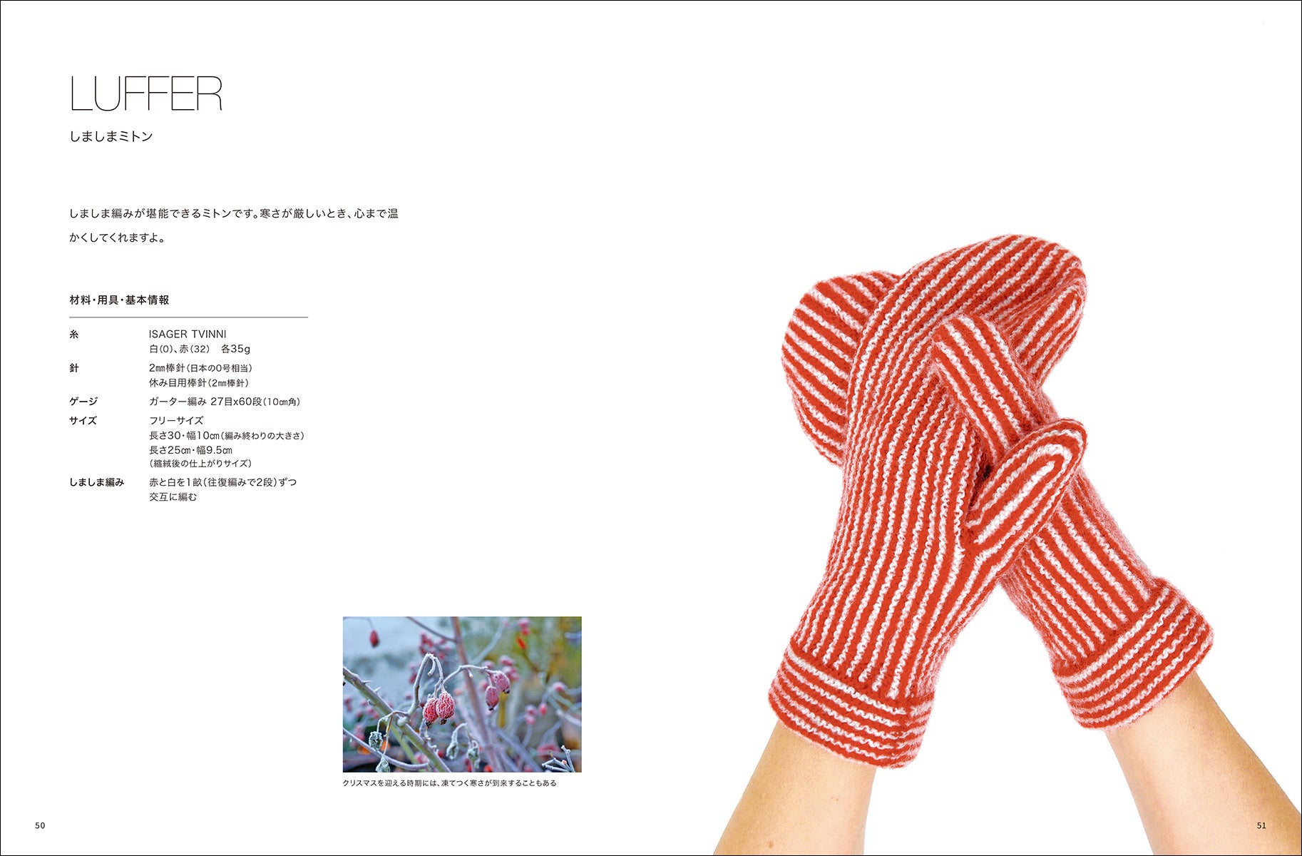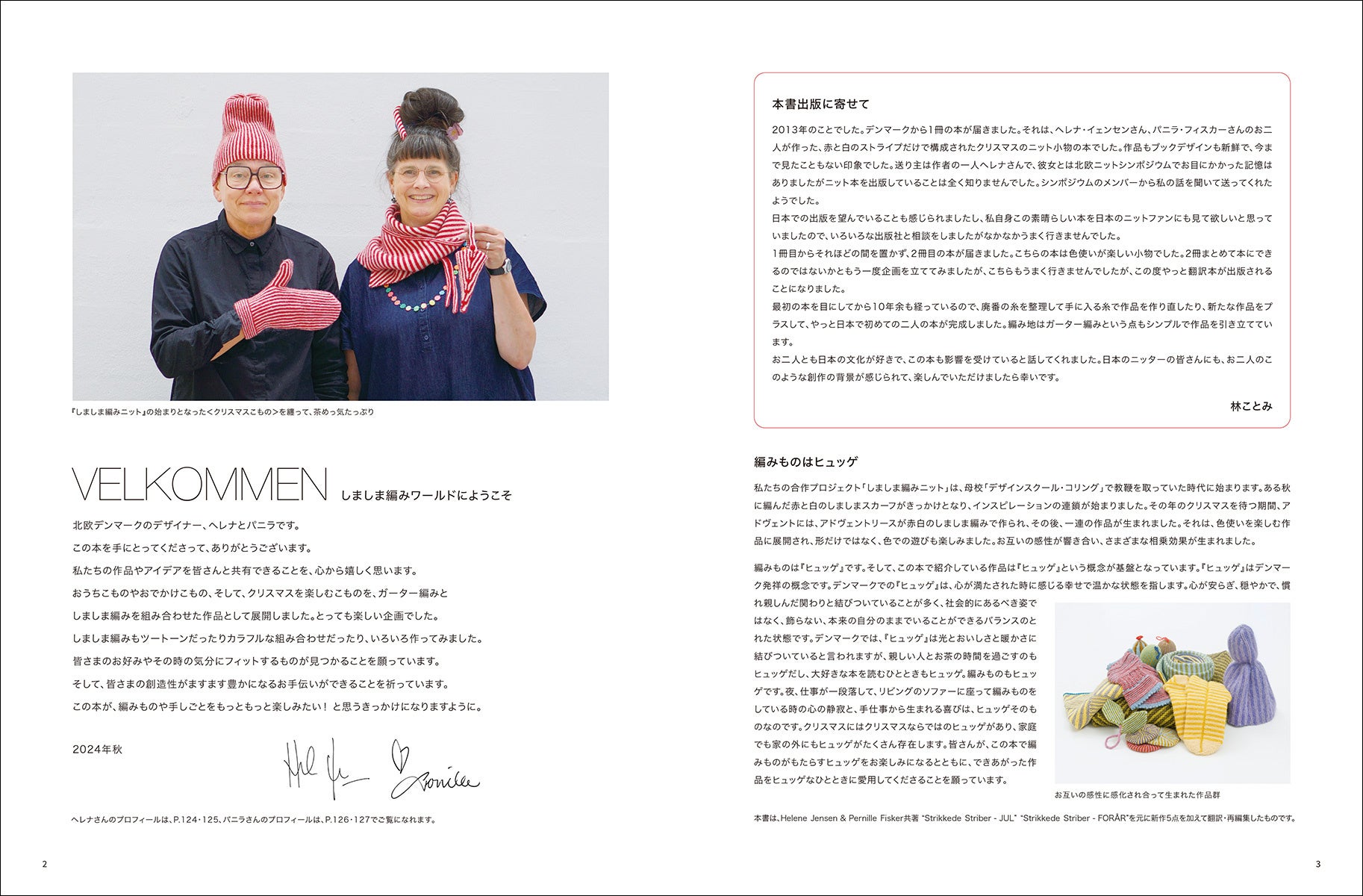 「おうちこものやおでかけこもの、そして、クリスマスを楽しむこものを、ガーター編みとしましま編みを組み合わせた作品として展開しました。とっても楽しい企画でした。しましま編みもツートーンだったりカラフルな組み合わせだったり、いろいろ作ってみました。皆さまのお好みやその時の気分にフィットするものが見つかることを願っています。そして、皆さまの創造性がますます豊かになるお手伝いができることを祈っています」(本文より)