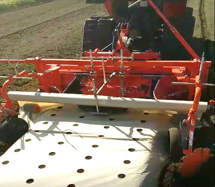 セルロースが主原料の農業紙製マルチシート。収穫後に鋤き込むと土壌分解されるため、剥ぎ取り作業や産廃処理費用の負担がなくなります。