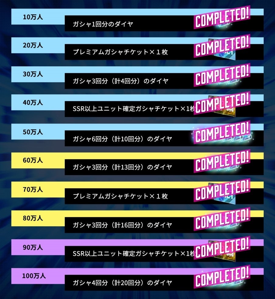 全世界100万ダウンロード突破を記念しまして、ダイヤ3000個(ガシャ10回分)を追加配布決定!