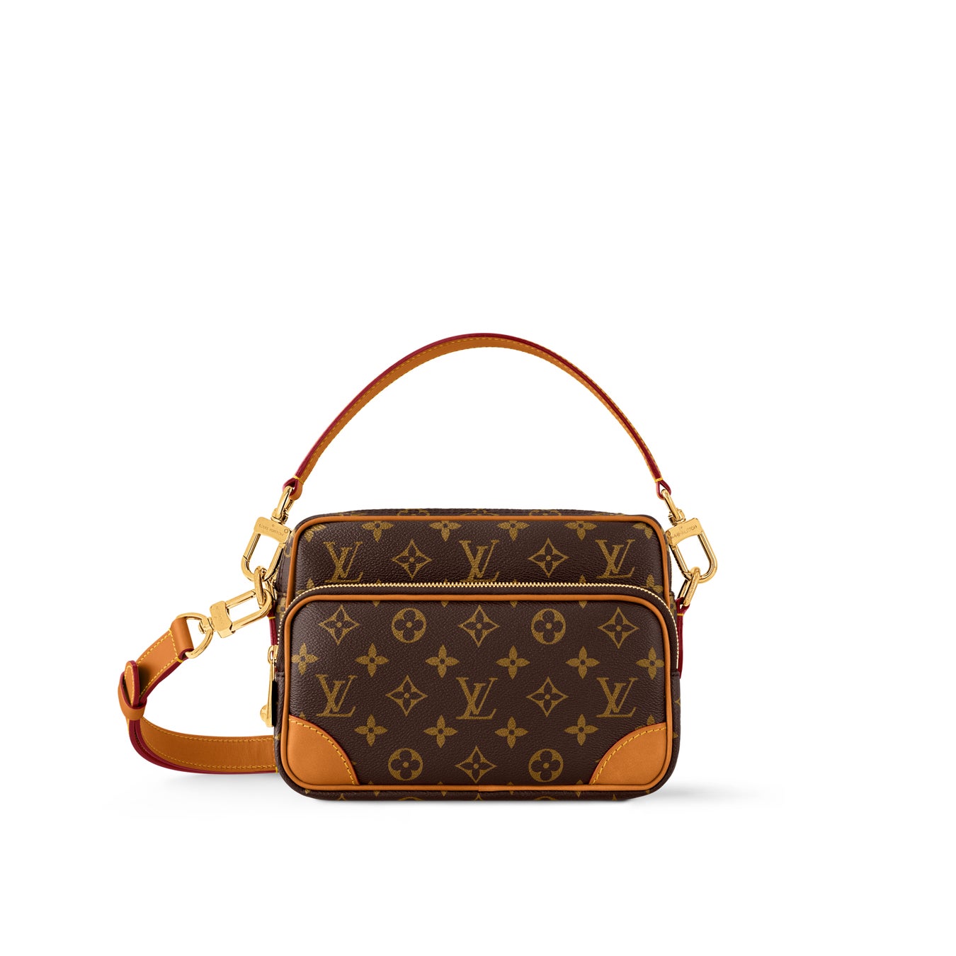 「モノグラム·アーカイヴ」コレクションの一部として登場した、トレンド感のある小ぶりなバッグ「ナイル」。ヴィンテージ風のディテールとモダンなエレガンスを融合したアイテムは、補強されたコーナーやファレル·ウィリアムスが新たに取入れたパール風のファスナー引き手が特徴。取外し可能なハンドルと着脱できるストラップでさまざまな持ち方を楽しめます。