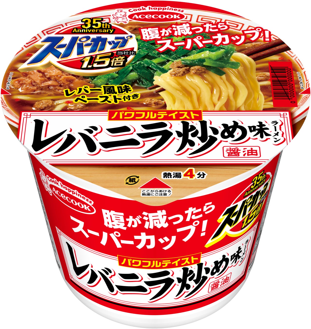 ① 発売35周年を迎える「スーパーカップ」から街の中華料理店で人気のスタミナメニュー「レバニラ炒め」をテーマにした新商品が登場!