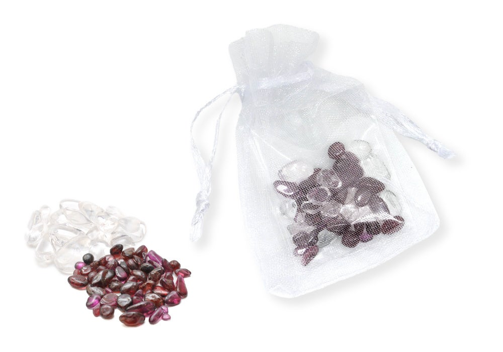 期間中、対象商品をご購入いただいたお客様へ、「ガーネット」と「水晶」の天然石チップをセットにした「天然石お守りセット(ミニポーチ付き)」をプレゼントいたします。