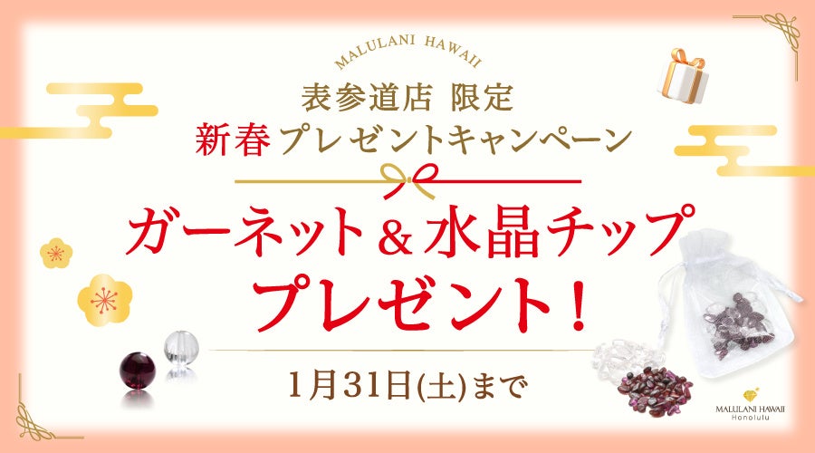 ハワイ発の天然石アクセサリーブランド「Malulani Hawaii(マルラニハワイ)」表参道店では、日頃のご愛顧に感謝を込め、新年のスタートにふさわしい特別なノベルティをご用意いたしました。