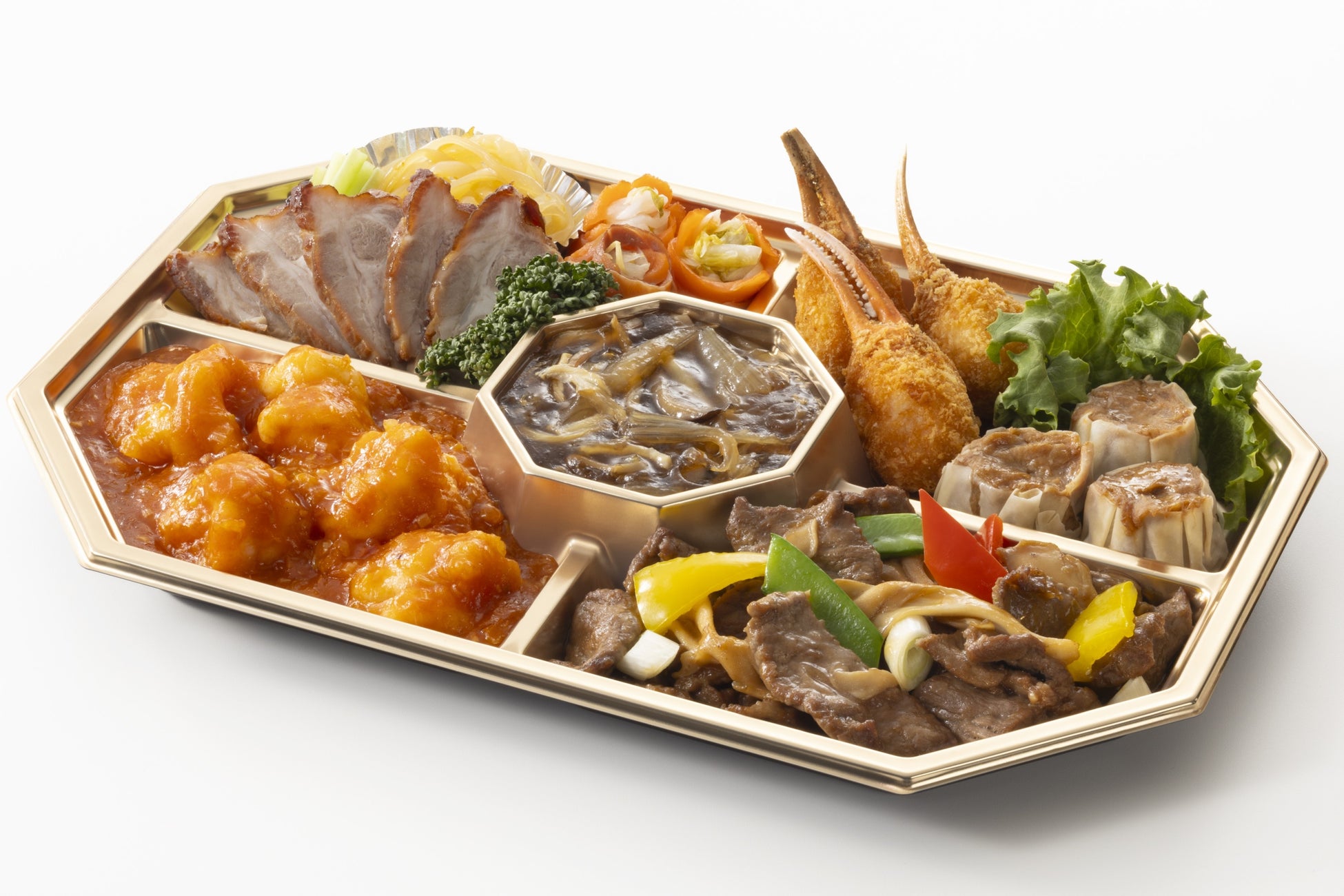 ふかひれ入り五目煮込み、海老のチリソース煮、牛肉のオイスターソース炒め 他