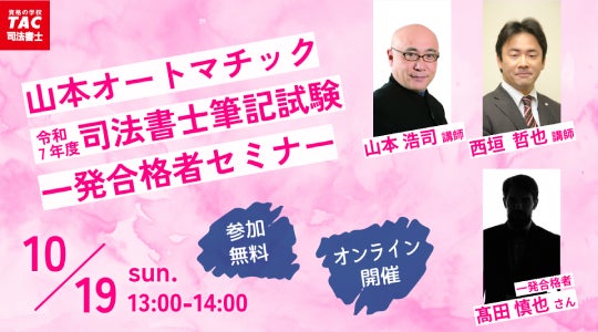 【TAC司法書士講座】オンラインセミナー「<山本オートマチック >令和7年度司法書士筆記試験一発合格者セミナー」開催のお知らせ