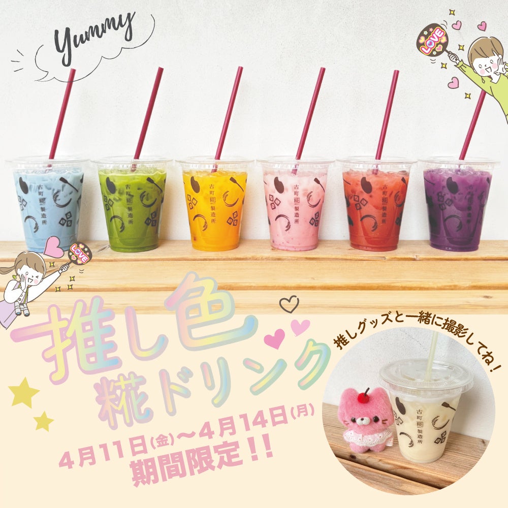 NSGグループの株式会社古町糀製造所(所在:新潟県新潟市、代表取締役:小畑宏樹)が運営する糀甘酒専門店「古町糀製造所(ふるまちこうじせいぞうしょ)」は、お客様の豊かな推し活を応援する取り組みとして、期間限定で〈推し色糀ドリンク〉を提供します。
