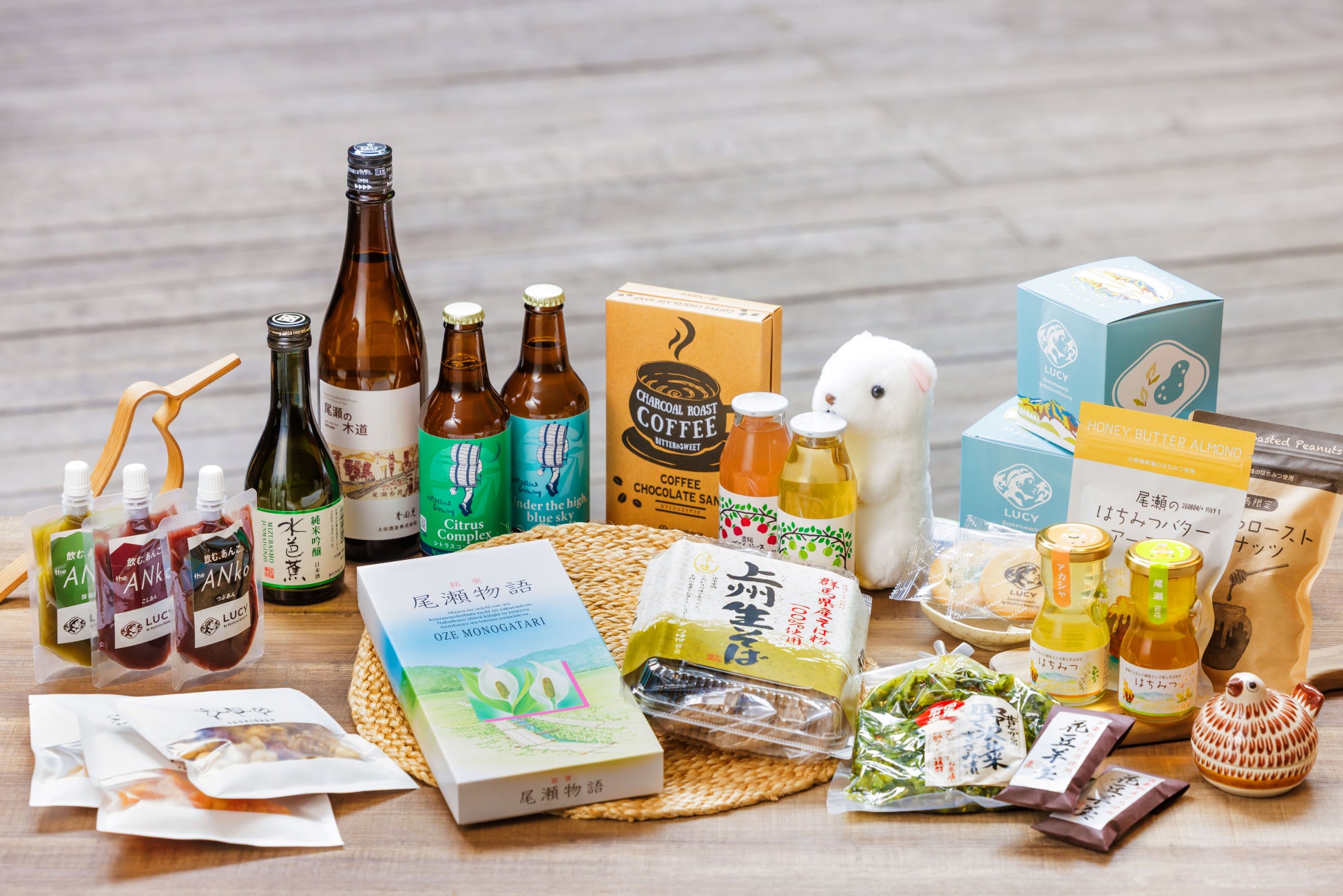 ショップには登山グッズやLUCYオリジナル商品が充実。尾瀬定番のお土産から、ここでしか買えないアイテムまで、幅広い品ぞろえで尾瀬ハイク前後の時間を楽しく、安心して過ごせるようにサポートします。中でも、オリジナルデザインのTシャツや帽子、LUCYロゴのタオルなど、20種類以上のオリジナルグッズがおすすめ。尾瀬ハイクの思い出に、選ぶ時間も楽しく過ごせます。