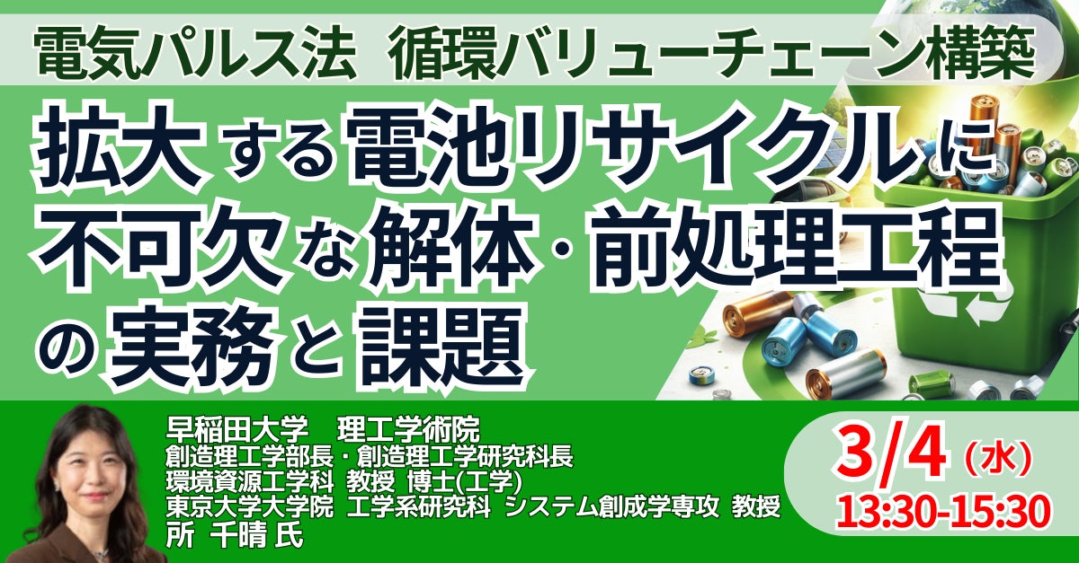 【JPIセミナー】「拡大する電池リサイクルに不可欠な解体・前処理工程の実務と課題」3月4日(水)開催