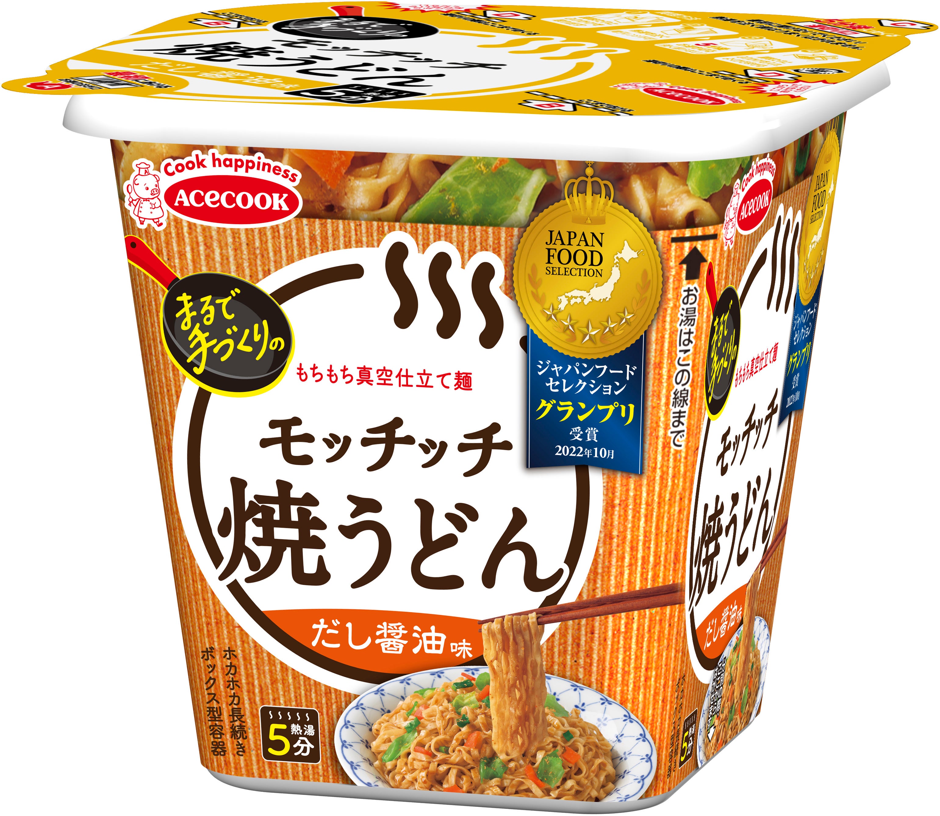 ■めん:まるで家庭で調理した焼うどんのような、もちもちとした食感が特長の「もちもち真空仕立て麺」です。(湯戻し時間:5分)