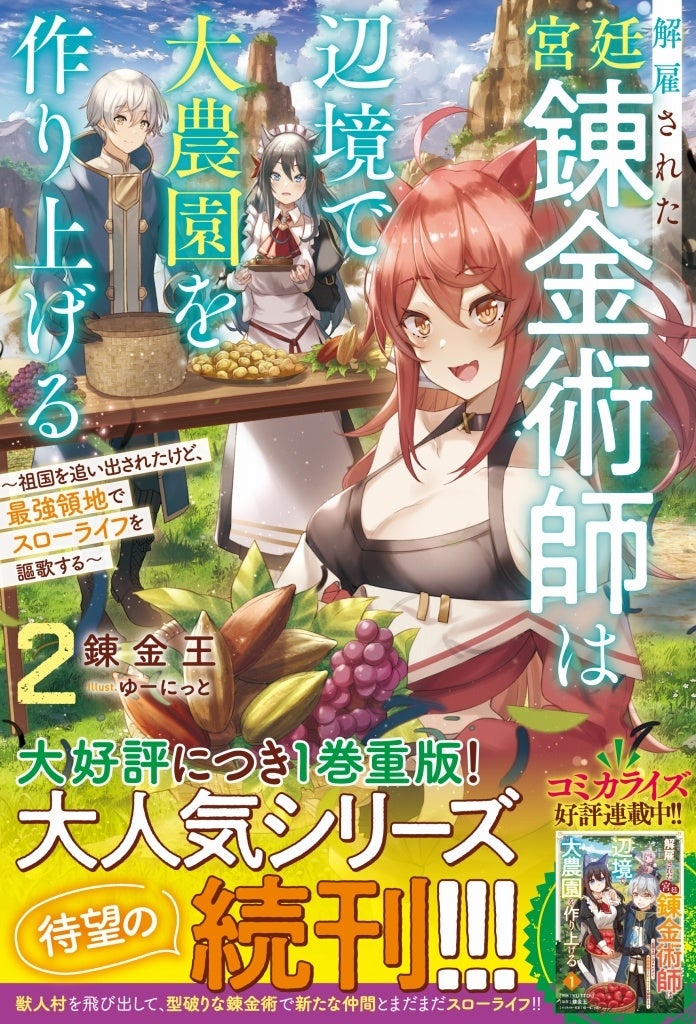 【あらすじ】 宮廷を解雇され、辺境の獣人村で農園を始めた錬金術師のイサギ。イサギの作物は獣人から大人気になり、鮮やかな野菜がずらりと並ぶ販売所や収穫した野菜を使った料理を提供するカフェを開くことに。そんなある日、獣王・ライオネルから「砂漠に農園を作ってほしい」と驚きの依頼が舞い込む。さらに、サポート役は獣王国の第一王女・レギナで…!? 砂漠に住む彩鳥族と水源を探したり、猫獣人メイドのメルシアと品種改良を進めたり、ときには宴を開いておいしいものを食べたりしながら、イサギの錬金術で砂漠の動植物や魔物の生態を解明! ついに荒れ果てた砂漠の地で農作物の収穫に成功する。一方、イサギの追放により作業が追い付かなくなった帝国では何やら怪しい動きが起こっているようで…。拠点を移してさらににぎやかになった一行は、まだまだ農耕スローライフを満喫中!