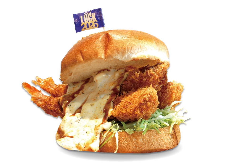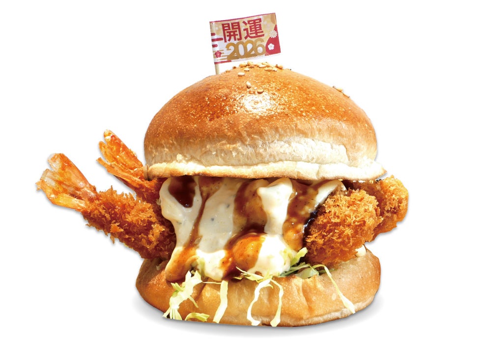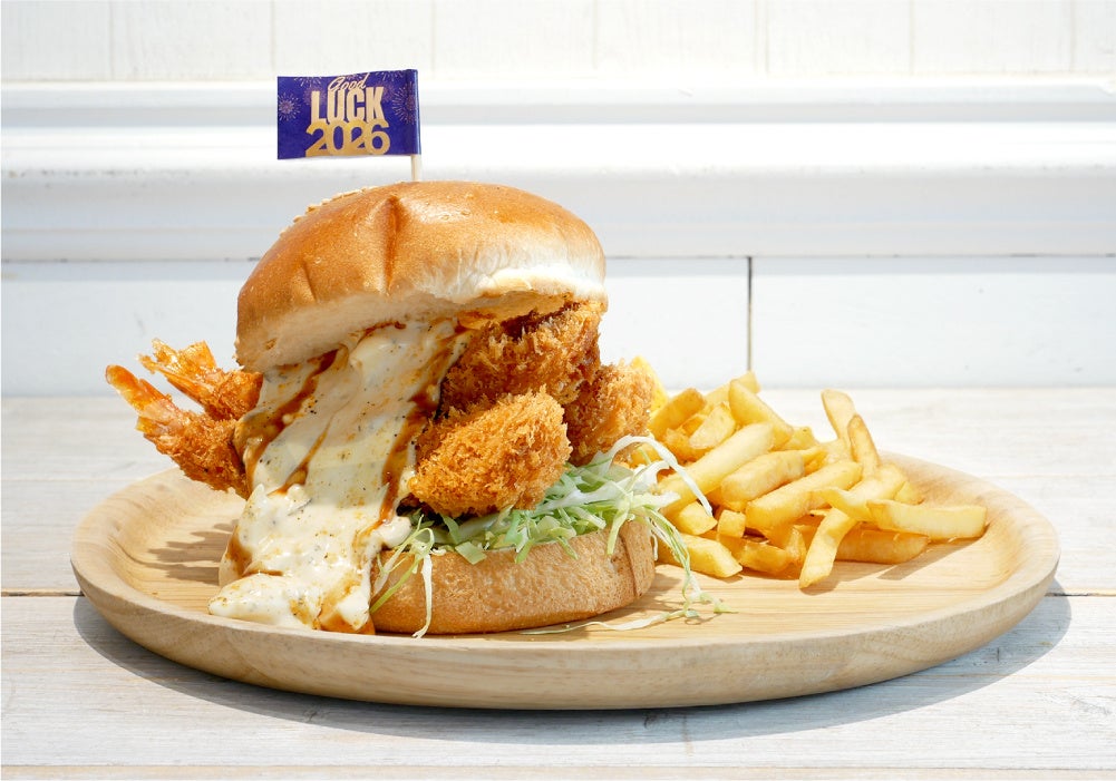 2026年の幸運を願い、見た目にも華やかで縁起の良いエビフライを主役にした、新春ならではの特別なバーガーです。
