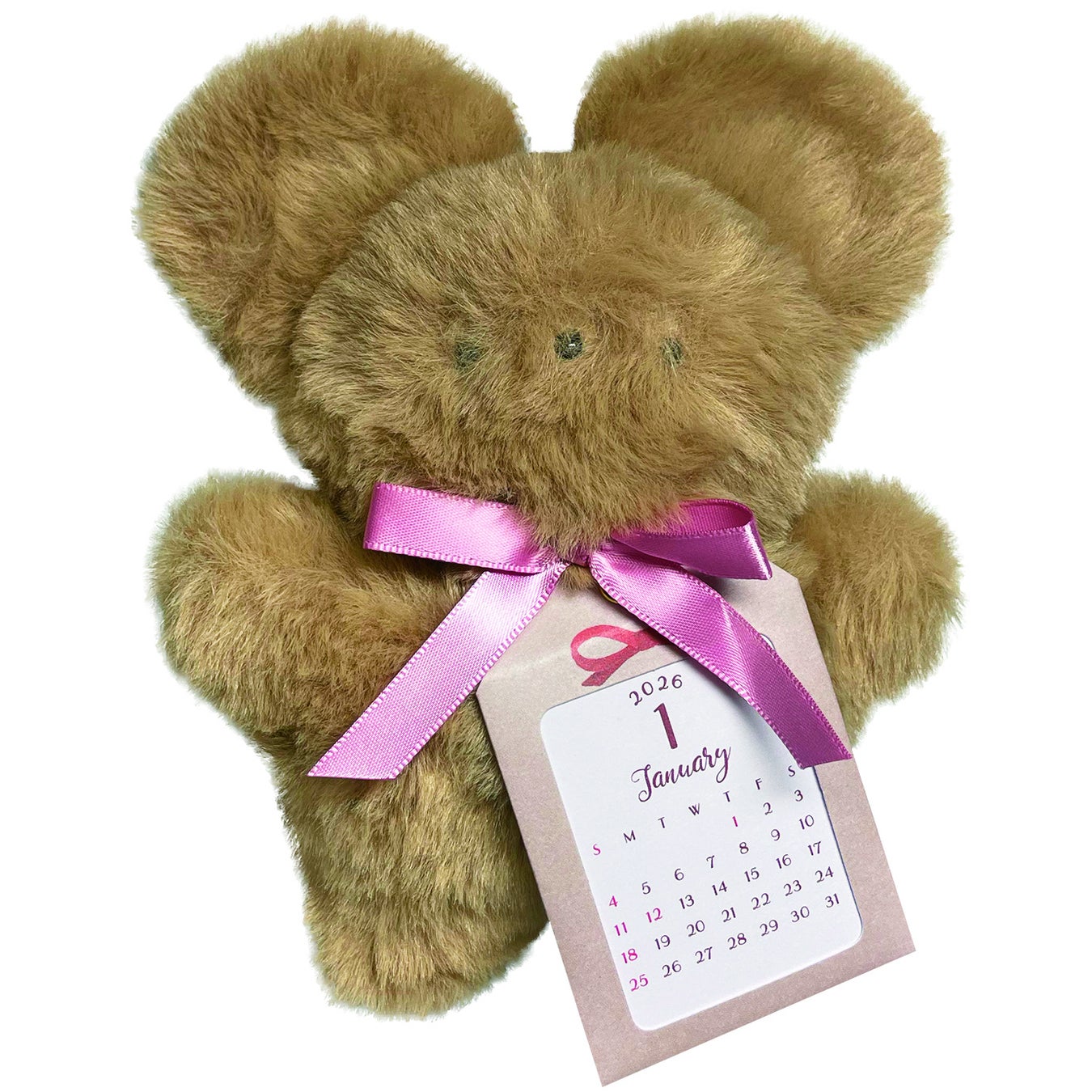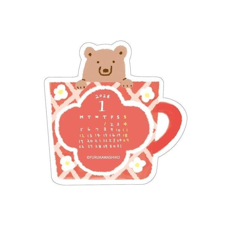 ふわふわとしたぬいぐるみの首元にミニカレンダーがついたデザイン。ボールチェン付きなので、キーホルダーとして持ち運ぶことも机の上で飾ることも可能。全3色展開。