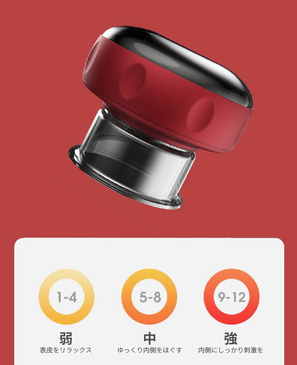 - お家で手軽に本格派セルフケアができる、電動カッピング器。肩こりや背中、お腹周り、脚のむくみ対策などに最適