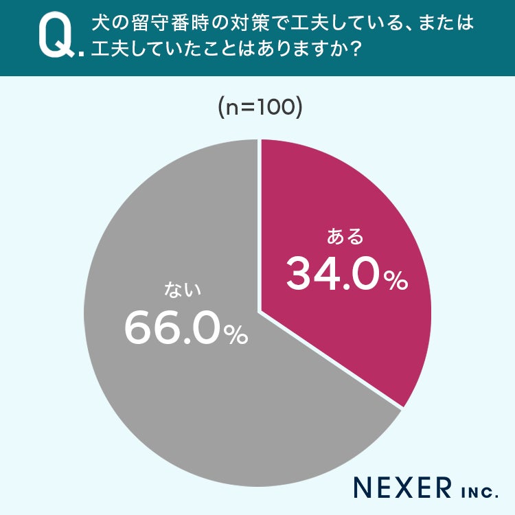 34%の方が犬の留守番時の対策で工夫したことが「ある」と回答しています。