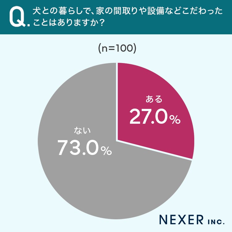 27%の方が、犬との暮らしで家の間取りや設備などこだわったことが「ある」と回答しています。