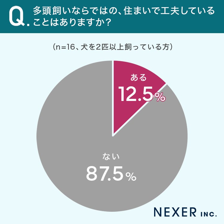 12.5%の方が、多頭飼いならではの住まいで工夫していることが「ある」と回答しています。
