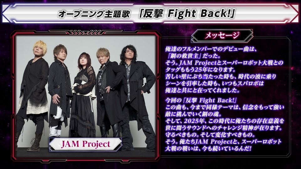 『スーパーロボット大戦Y』の主題歌が、JAM Projectによる「反撃 Fight Back!」に決定いたしました。