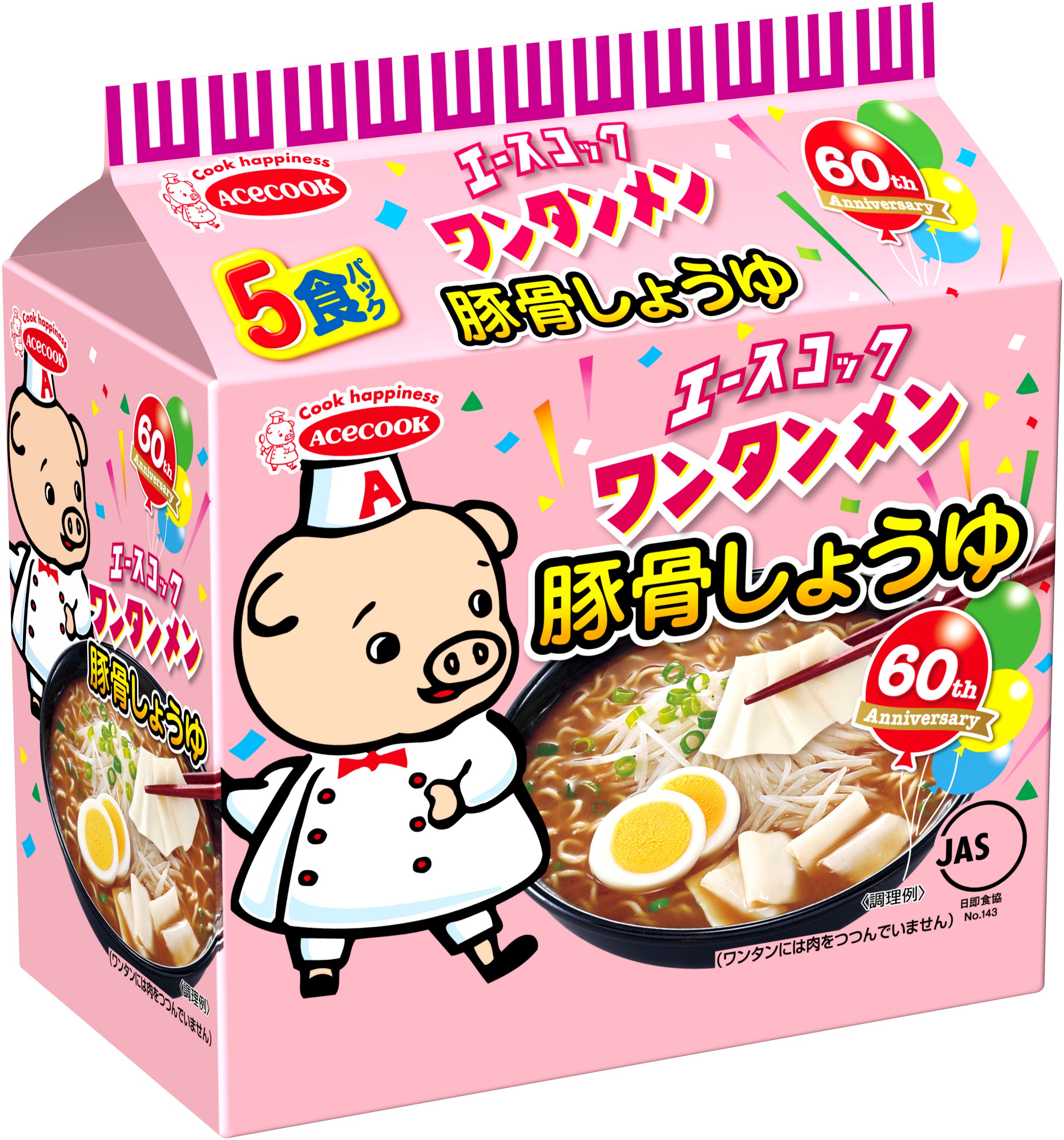 ワンタンメンは、関西で愛され続けている当社が誇るロングセラーブランドで、2023年に発売60周年を迎えます。周年企画の第一弾として、可愛らしい“こぶた”を大きく訴求し親近感を高めた周年パッケージへとリニューアルします。今後1年間を通して、ワンタンメン60周年をお祝いする企画を複数予定しておりますので、ぜひご期待ください。