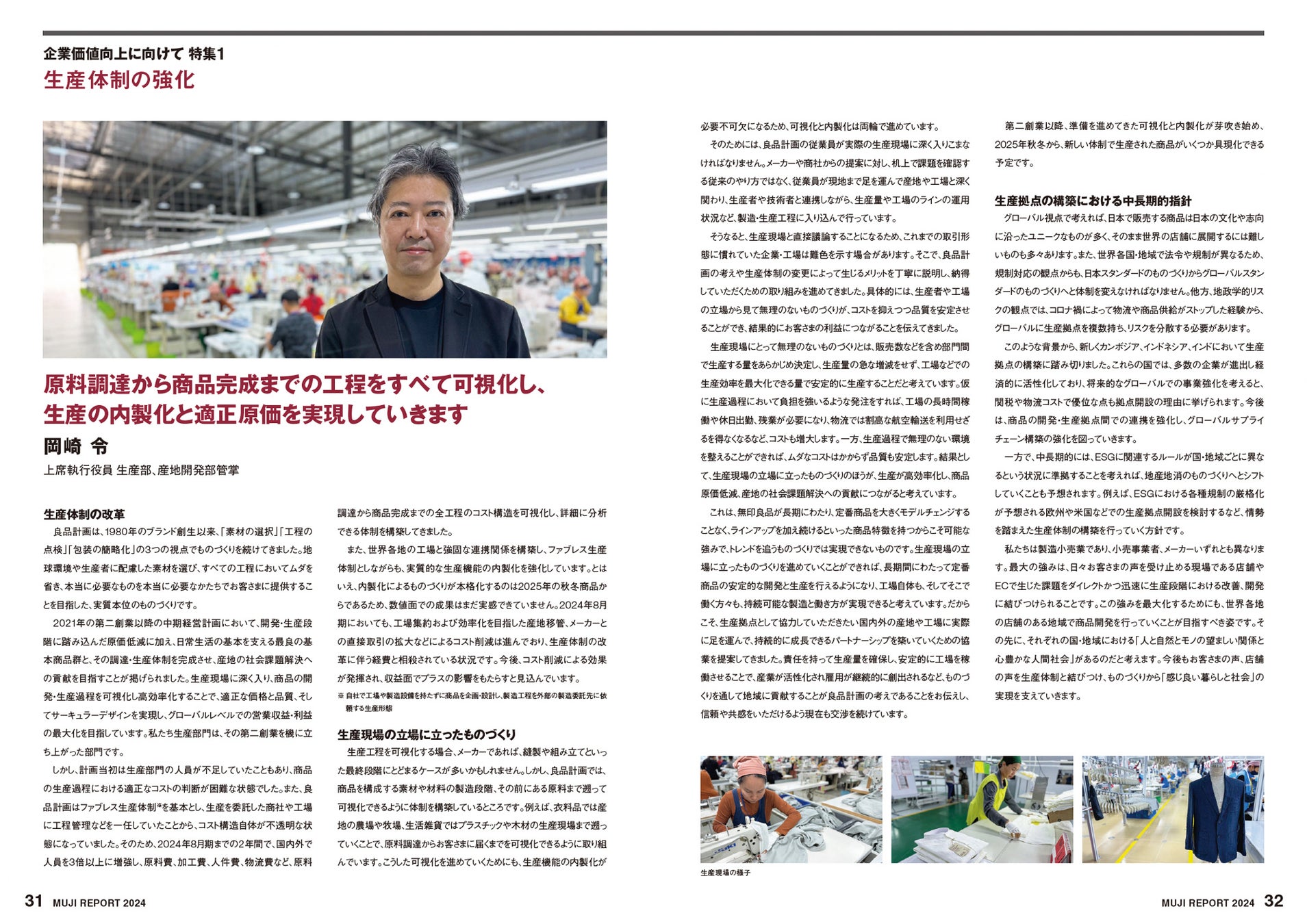 無印良品を展開する株式会社良品計画(東京都文京区/代表取締役社長 清水 智)は、本日、良品計画グループ統合報告書「MUJI REPORT 2024」(全98ページ)を発行し、WEBサイト上に公開しました。