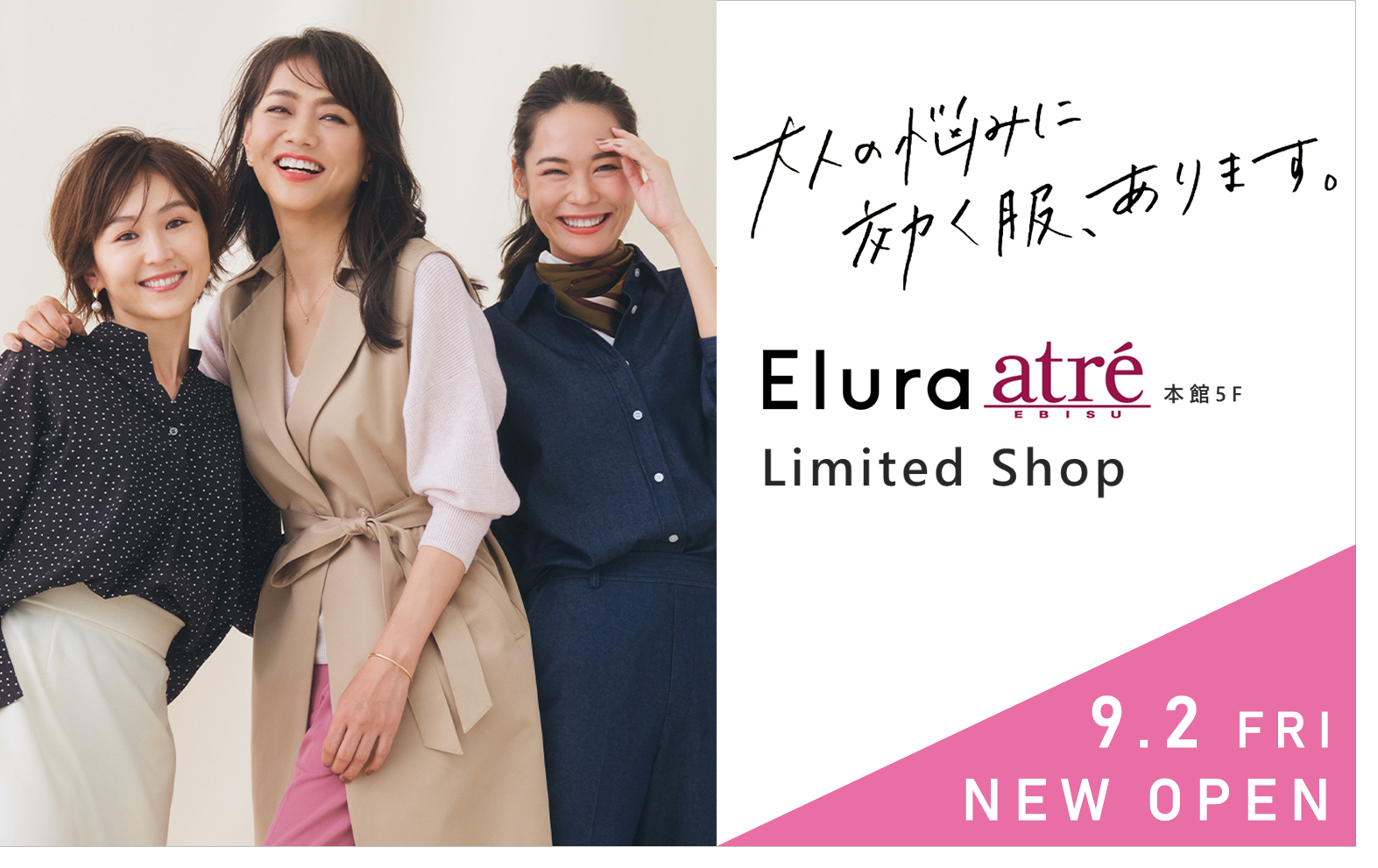 “大人の悩みに効く服”で好調のEluraが、昨年秋の大好評を受け2022年9月2日(金)「アトレ恵比寿」に期間限定ショップを再出店