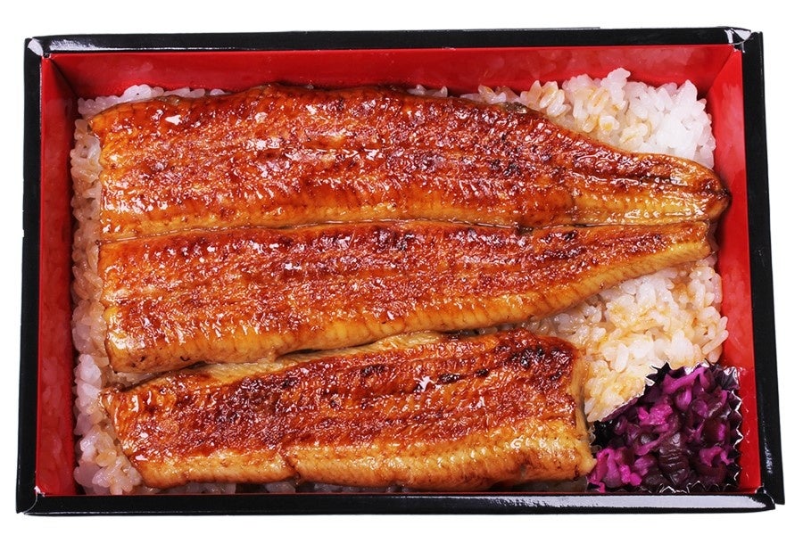 国産の活鰻を使用し、自社静岡工房にて割き・串打ち・白焼・蒸しの昔ながらの工程を経て、ての字自慢のタレで焼き上げた蒲焼をお弁当にしました。