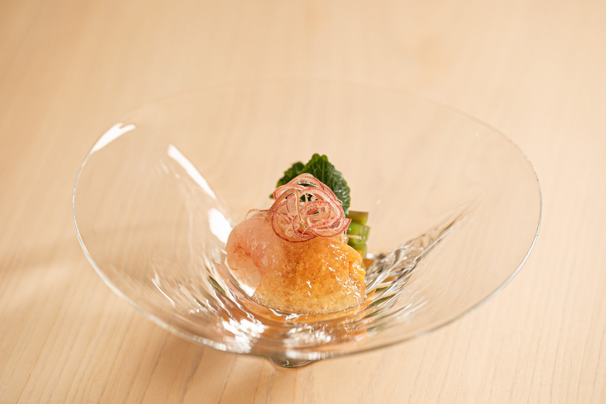 ミシュランガイド東京2024で、1つ星を獲得している銀座の予約困難店。日本料理出身の村山大作氏は会席の経験をつまみに生かし、揚げ物や椀物を供し酢の物で締める。握りは江戸前の仕込みを種に施す。小肌や車海老に芝海老のおぼろをかませる古典もあれば、玉子にメープルシロップの香りを足すモダンさも見せる。